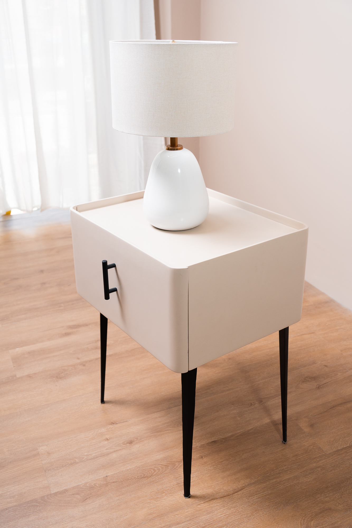 Mesa de noche moderna. Su diseño exclusivo aporta ligereza y orden visual a tus espacios, sin perder en ningún momento su funcionalidad. Gracias a sus líneas limpias y proporciones equilibradas, se integra fácilmente en distintos estilos de decoración y ofrece un soporte práctico para mantener tus objetos esenciales siempre a mano.