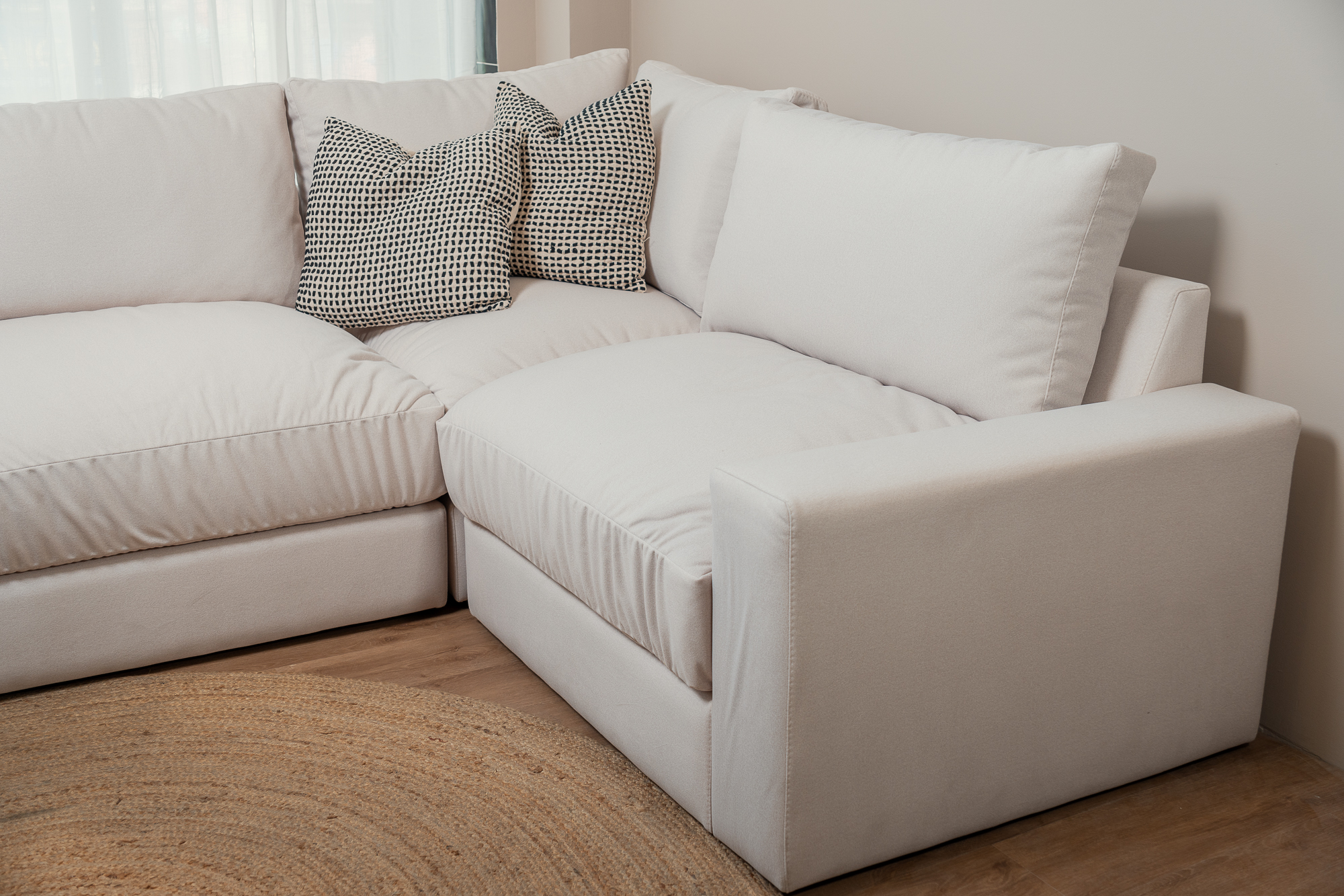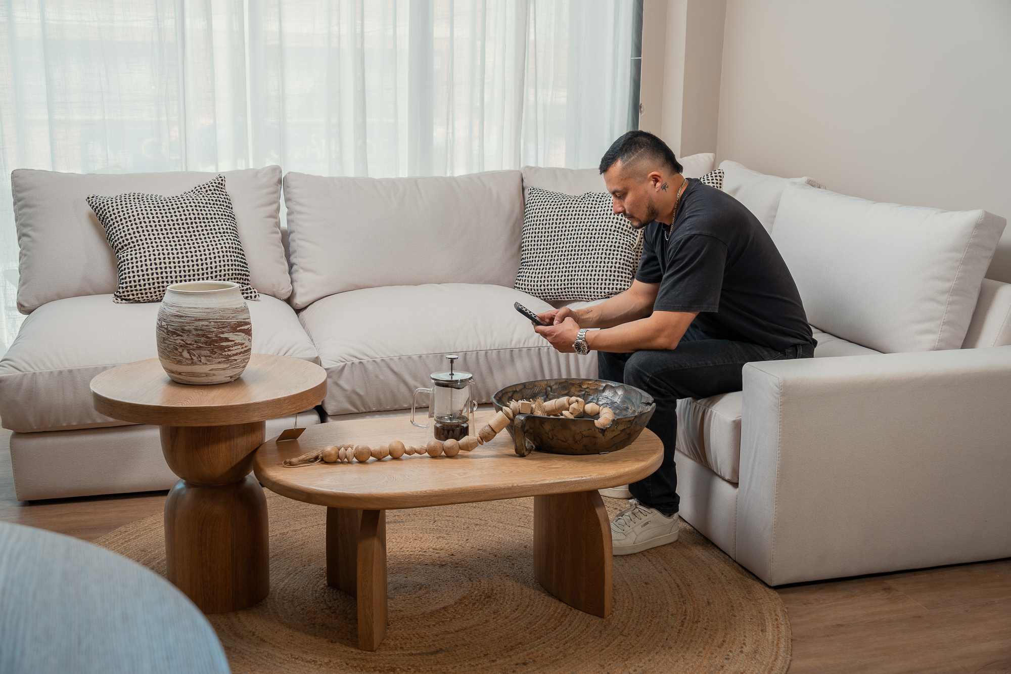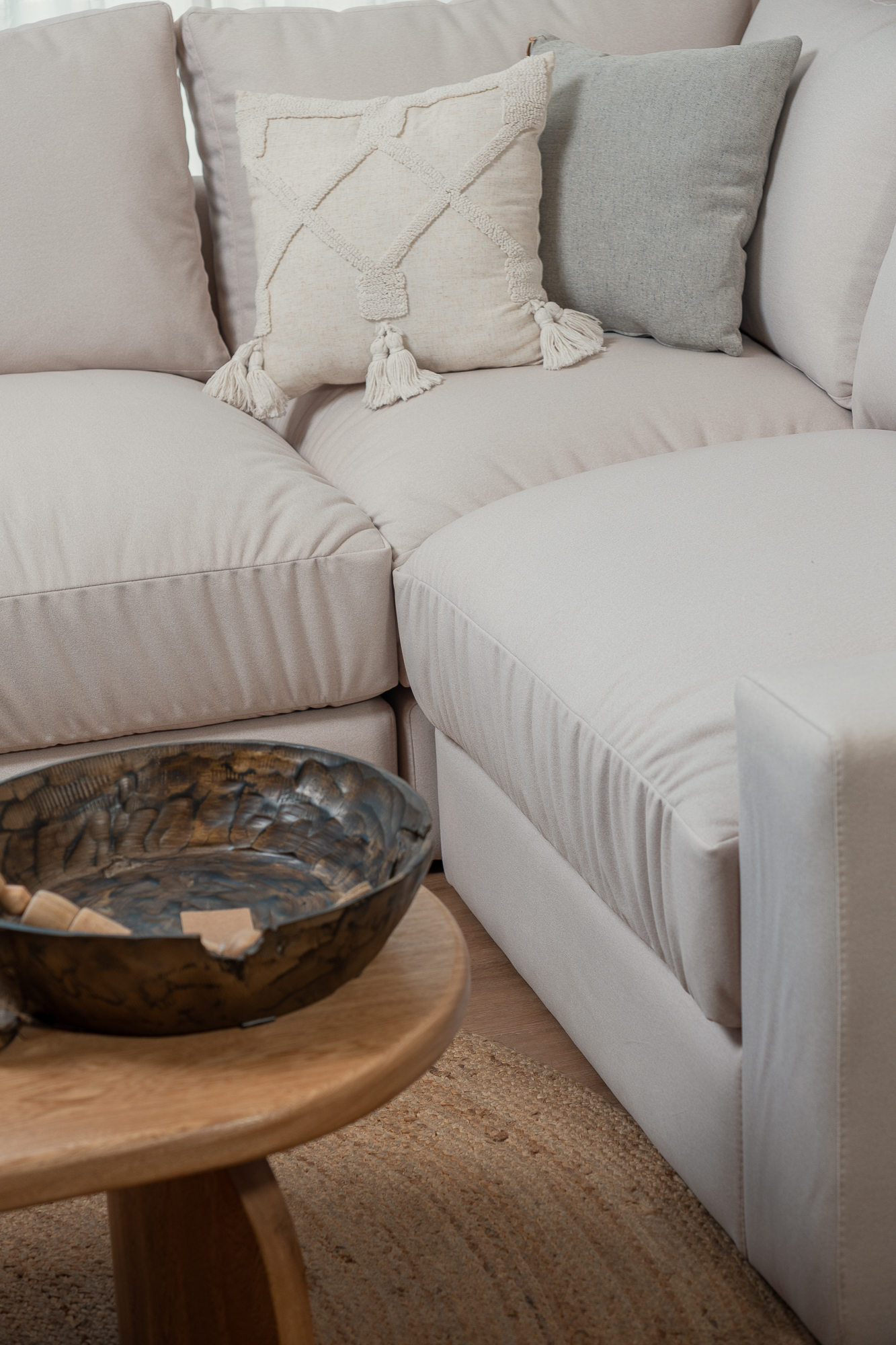 Sala amplia y confortable, diseñada para brindar una experiencia de descanso superior. Elaborada con materiales de alta calidad, cuenta con estructura en pino amarillo que garantiza resistencia y durabilidad, además de telas premium que aportan suavidad y sofisticación.