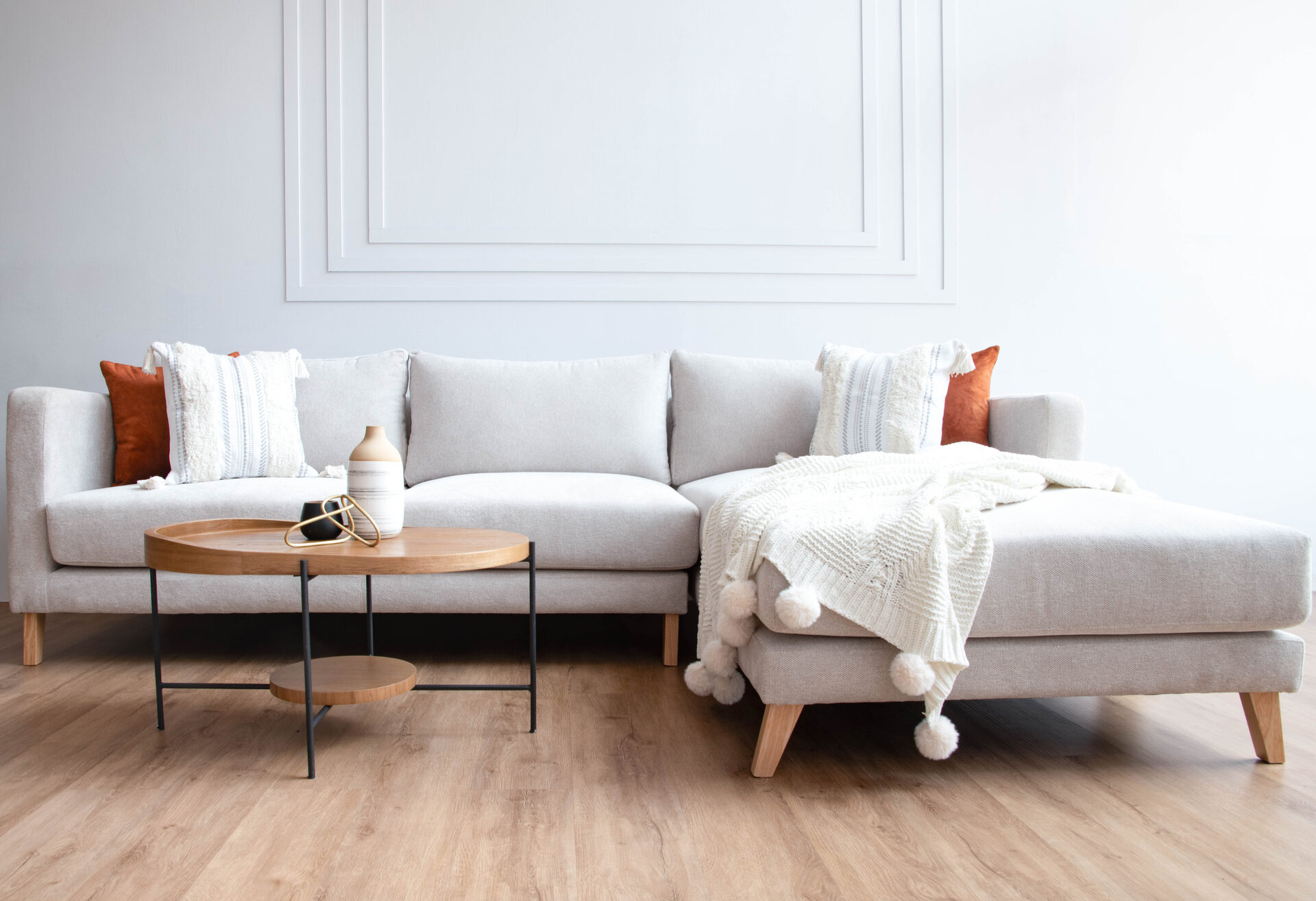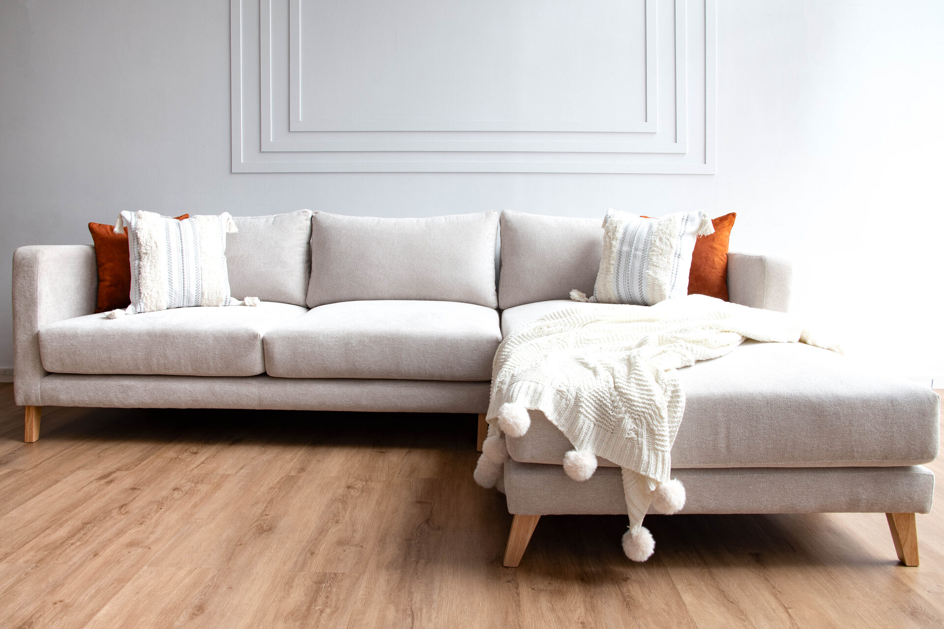 Sofa en L de diseño. Convierte tu casa para en un lugar acogedor. La mezcla ideal entre estetica comodidad y funcionalidad. Con pequeños detalles en madera flormorado y una estructura con fluidez y caracter, añadido a un chaise long.
