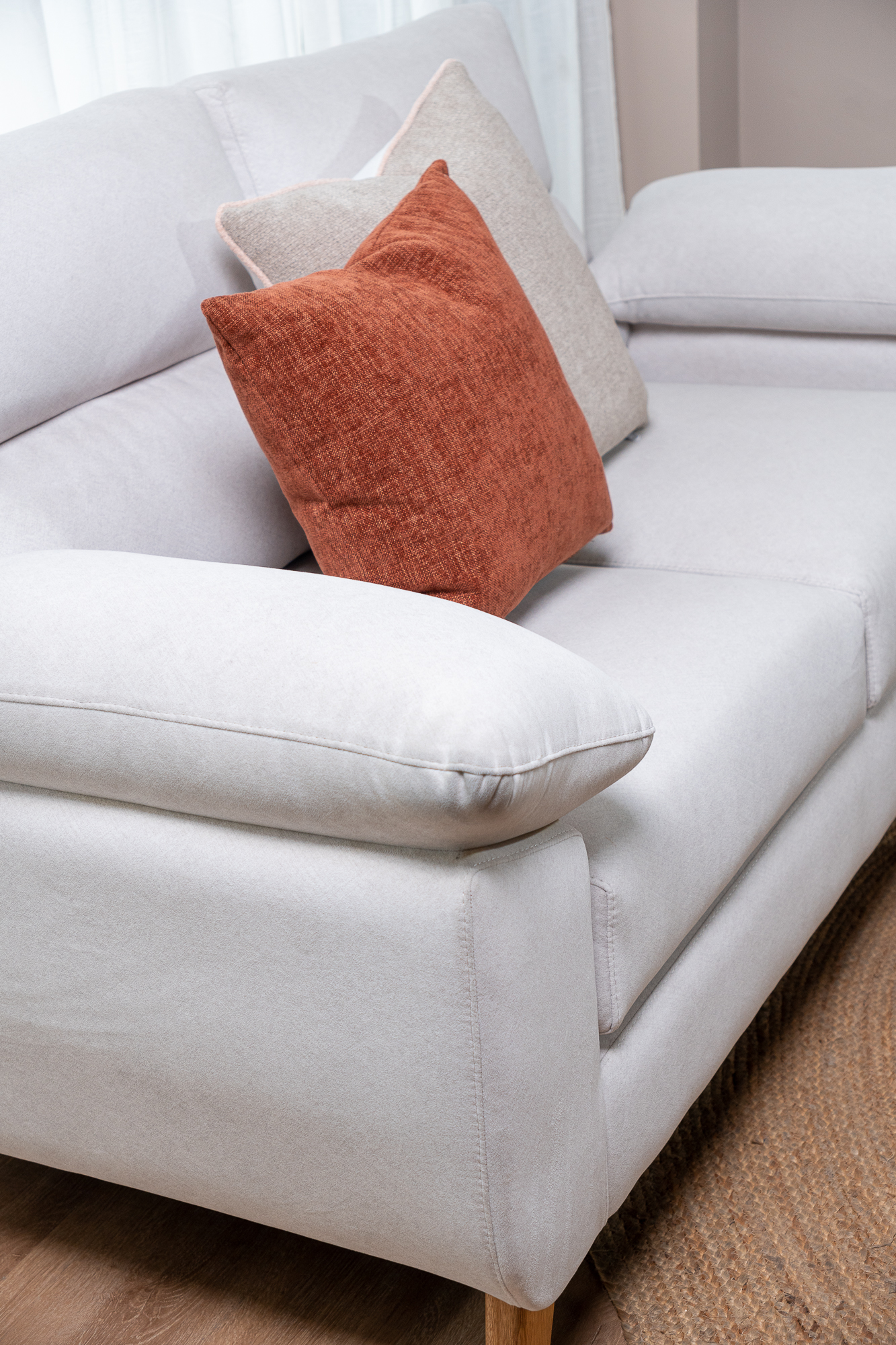 Sofá minimalista, suave y elegante. Su cómodo diseño lo hace único. Inspirado en el estilo nórdico, incorpora sutiles divisiones que agregan dinamismo y equilibrio visual al espacio. Sus líneas limpias y proporciones armoniosas permiten que se integre fácilmente en distintos estilos de decoración.