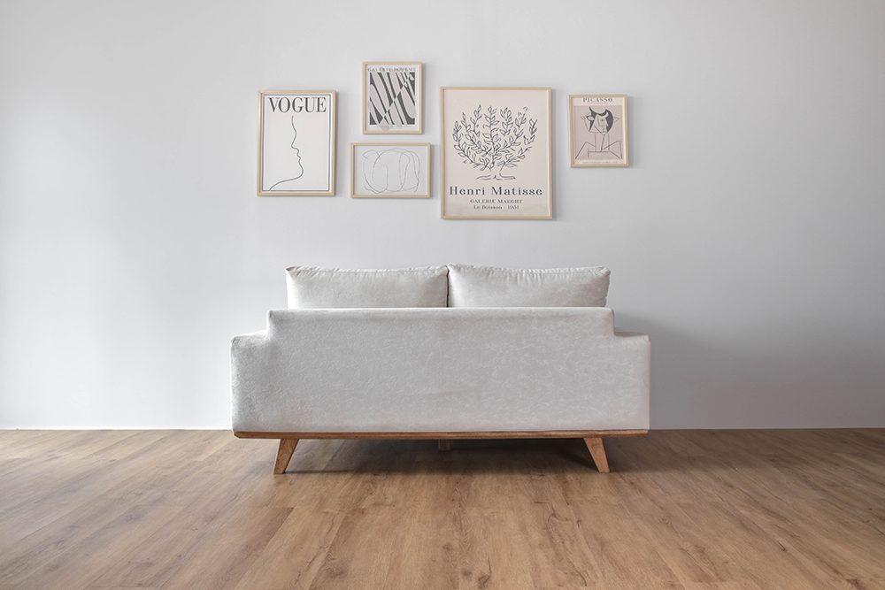 Sofá moderno y elegante con un diseño funcional. Sus líneas rectas resaltan su elegancia, y su robusta base de madera maciza le proporciona carácter.