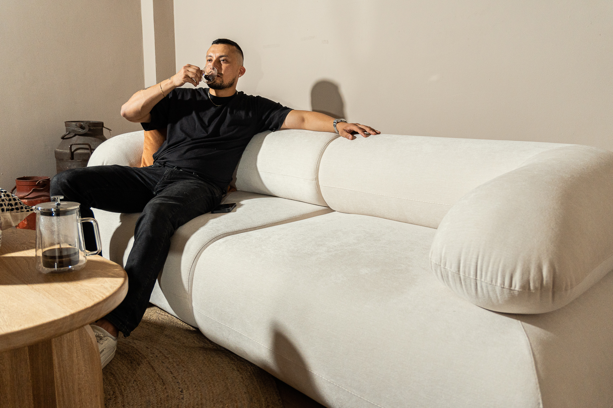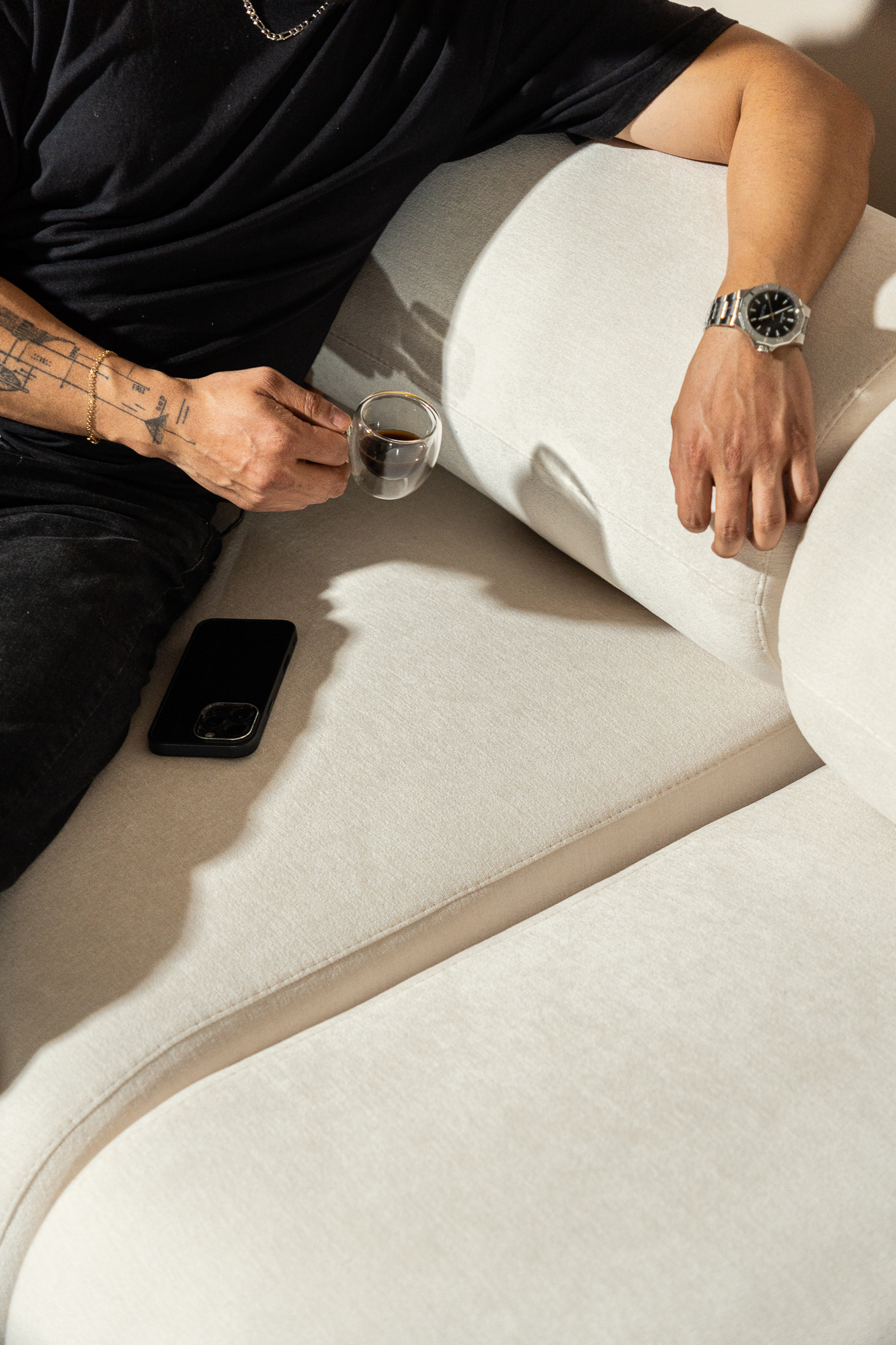 Sofá moderno con gran capacidad de espacio.Su diseño orgánico influenciado por el estilo japandi, aporta suavidad ay fluidez a cualquier espacio. Las formas delicadas y equilibradas generan una sensación de armonía y calma convirtiéndolo en una pieza ideal para ambientes que buscan calidez simplicidad y elegancia contemporánea.
